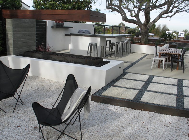 Another surprise was how many people objected to white gravel, saying it reminded them of their grandma’s front yard. Okay, yes, I admit that I did like to steal the sparkly white gravel out of my septuagenarian neighbor’s front yard when I was six, but it has made a real come back since then! It can be wonderfully clean and classic, like this elegant Mediterranean garden by AMS Landscape, or oh-so-minimalist-modern like this funky firepit/fireplace patio by Grounded (whose Mid-Century inspired work I just adore).